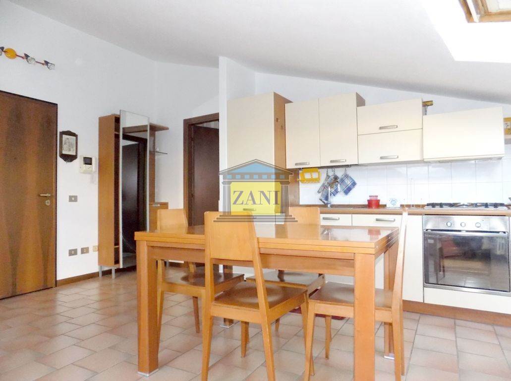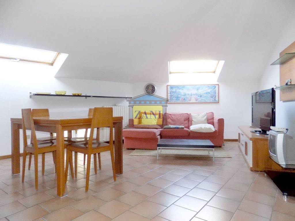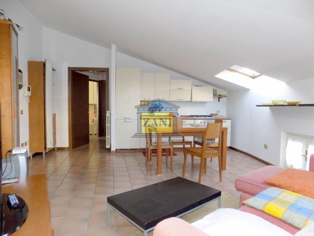 In centro paese, appartamento MANSARDATO di tre locali, ARREDATO, al terzo piano con ascensore. Ingresso nell'ampio soggiorno, cucina a vista, camera da letto matrimoniale, cameretta, bagno e ripostiglio. Doppi vetri, porta blindata, riscaldamento autonomo. Spese contenute. Subito disponibile, sono richieste referenze.
