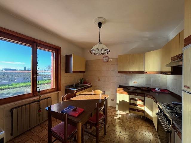 Dislocata su due livelli è composta al piano primo da ingresso, soggiorno con balcone, cucina abitabile , due camere da letto matrimoniali e bagno. Questo appartamento principale si collega internamente al piano terra che ospita ,oltre ad un secondo ingresso indipendente , anche altri diversi comodi accessori quali due locali cantina, un locale di sgombero, un ampio ripostiglio, la lavanderia ed il locale tecnico. Il piano terra può, all'occorrenza ed in caso di varie necessità famigliari , essere utilizzato come seconda unità abitativa così come è stato fin ora vissuto, pur essendo un'unica unità residenziale . L'unità è corredata da doppia autorimessa e da cantina posti in un fabbricato esterno. Ampia area cortilizia e giardino privato piantumato e recintato . Libera subito. Ottimo il prezzo richiesto di euro 170.000,00 trattabili