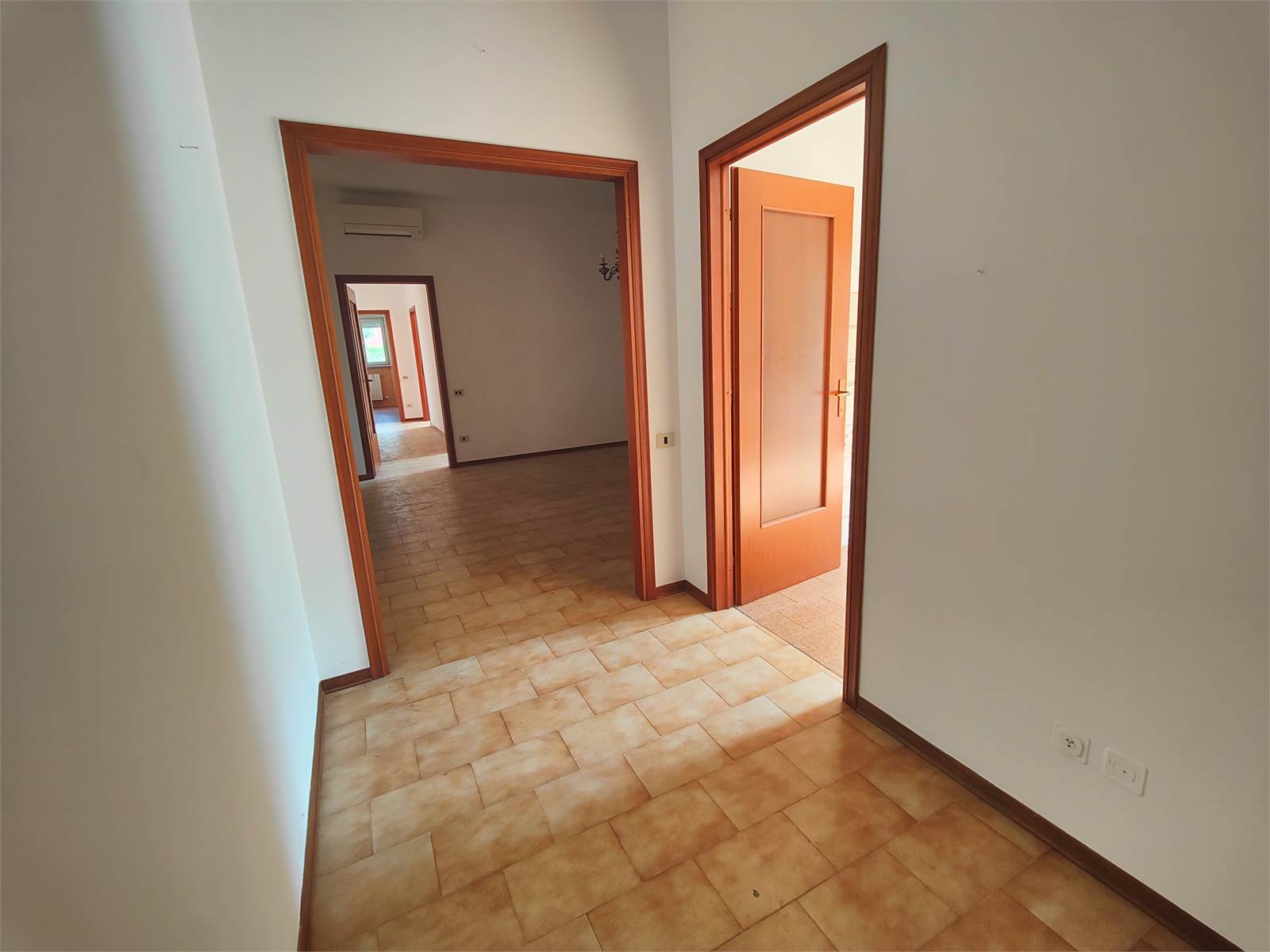 L’ingresso è ampio e accogliente e conduce alla zona giorno composta da una cucina abitabile e da un grande soggiorno, valorizzato dalla presenza di tapparella elettrica che garantisce comfort e praticità. Gli ambienti risultano ariosi e ben illuminati grazie alle ampie aperture verso l’esterno.