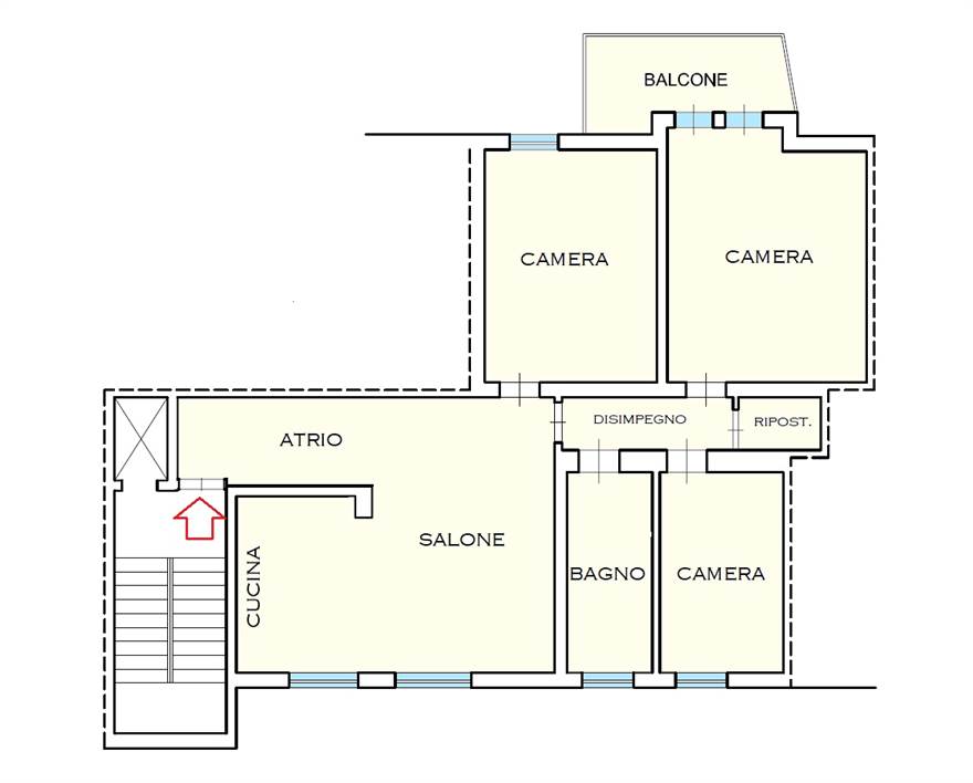Completano la proprietà un balcone, una cantina e numerose finiture moderne: porte interne e maniglie di design contemporaneo, porta d’ingresso blindata, infissi con doppi vetri, due condizionatori (zona giorno e zona notte).