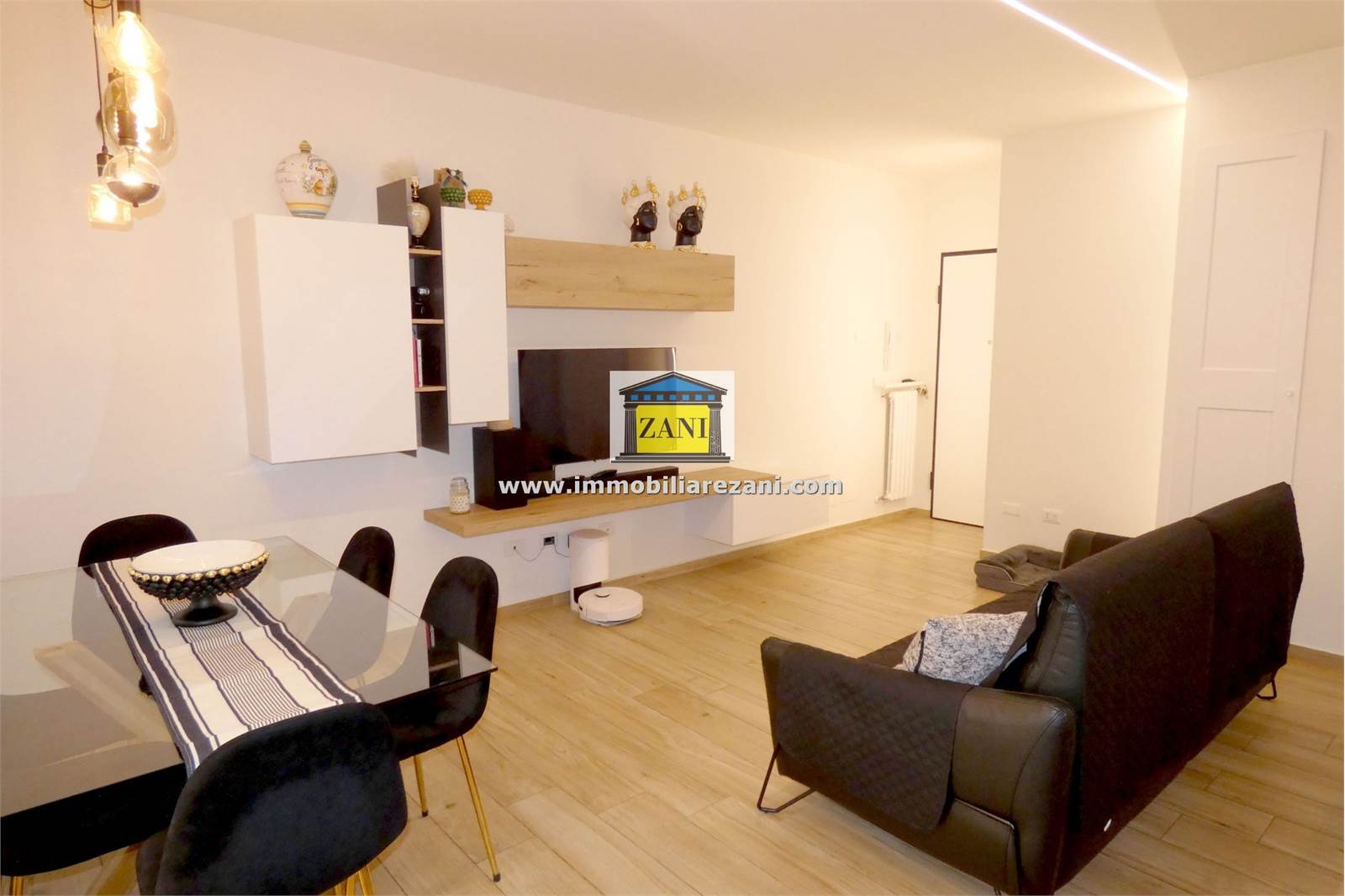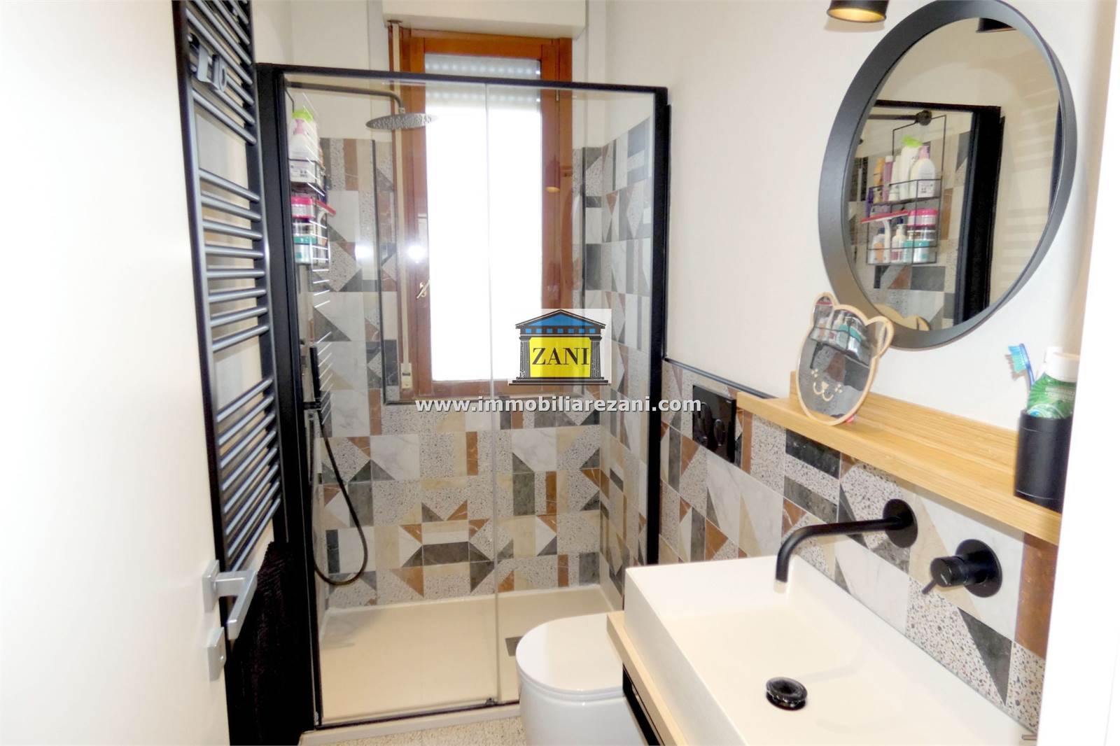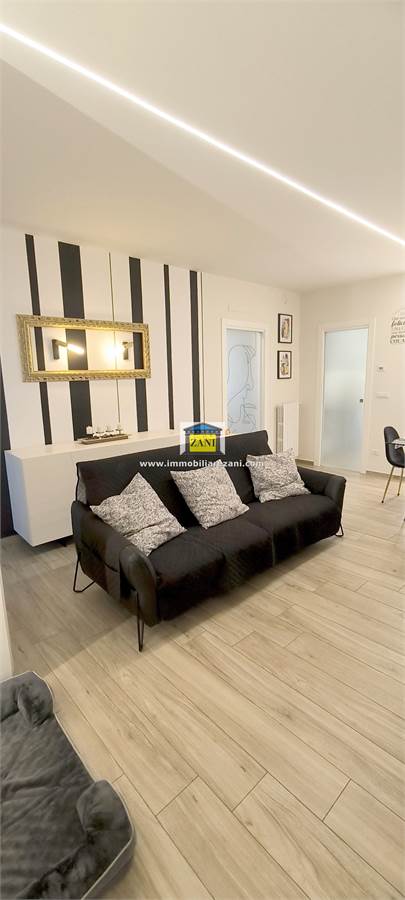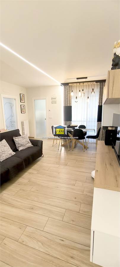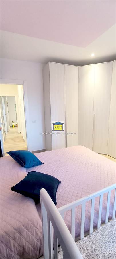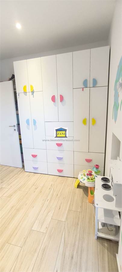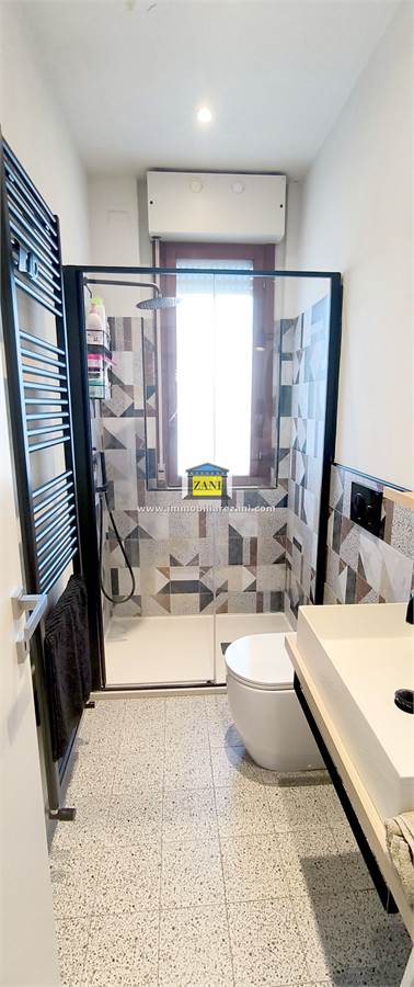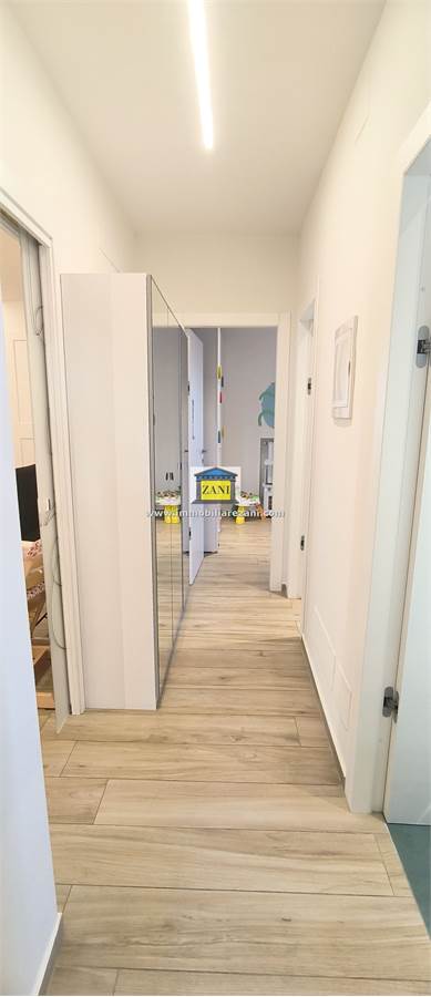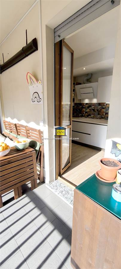 Le finiture sono di buon livello e uniformi in tutta la casa, con pavimentazione in gres porcellanato, infissi con doppi vetri e porta d’ingresso blindata. Il terrazzino è attrezzato con zanzariere elettriche e tenda da sole. L’impiantistica è completa di predisposizione per aria condizionata con due split, antifurto e tapparelle elettriche; nei bagni sono presenti scaldasalviette e le porte interne includono soluzioni scorrevoli in vetro tra cucina e disimpegno notte.