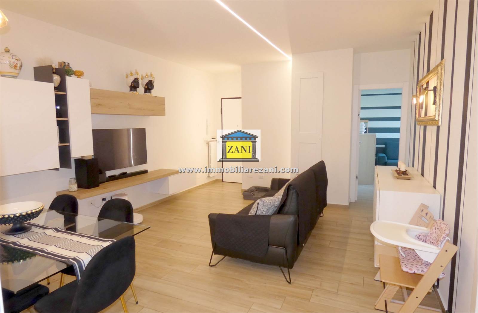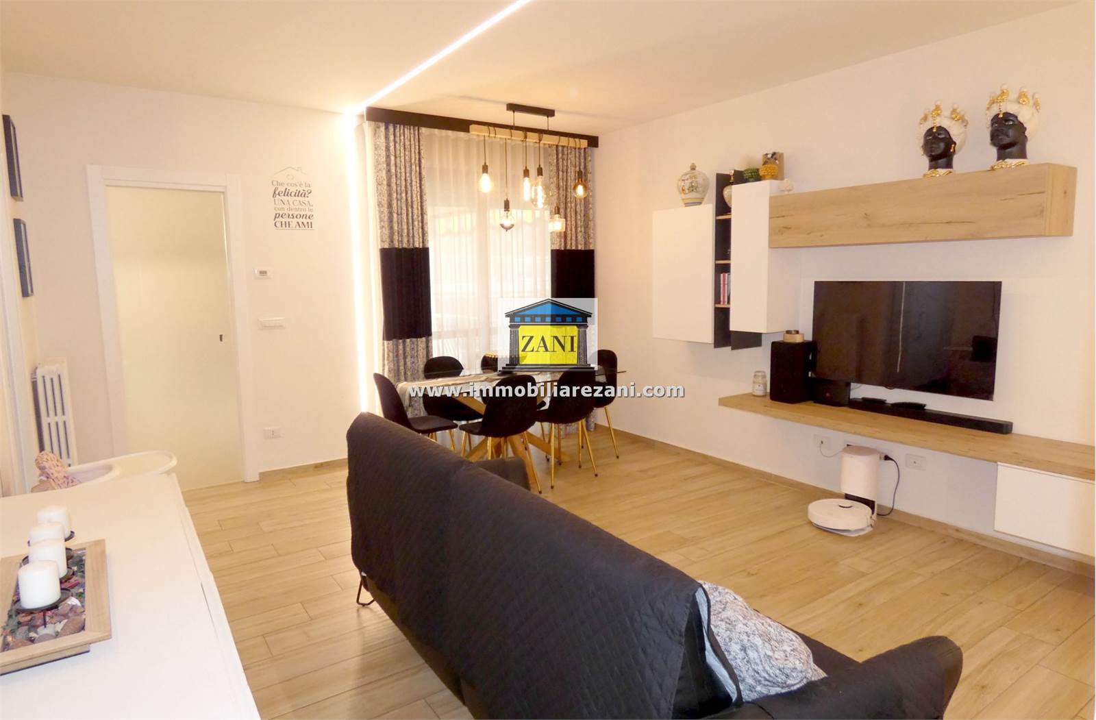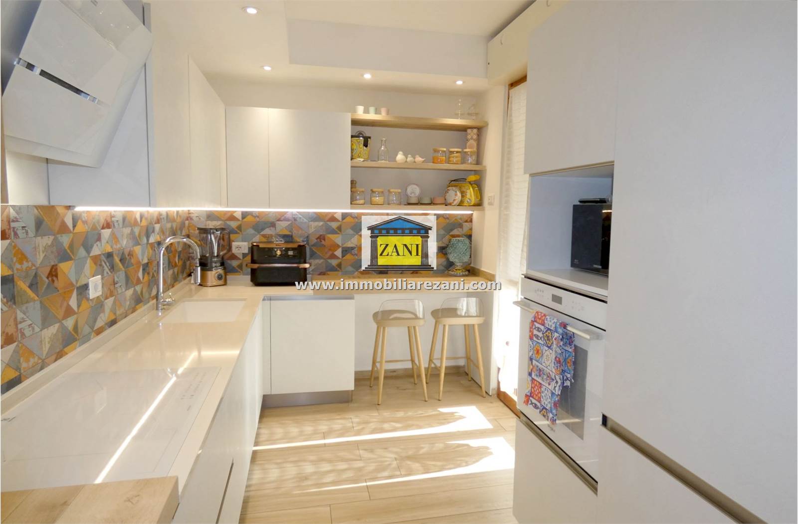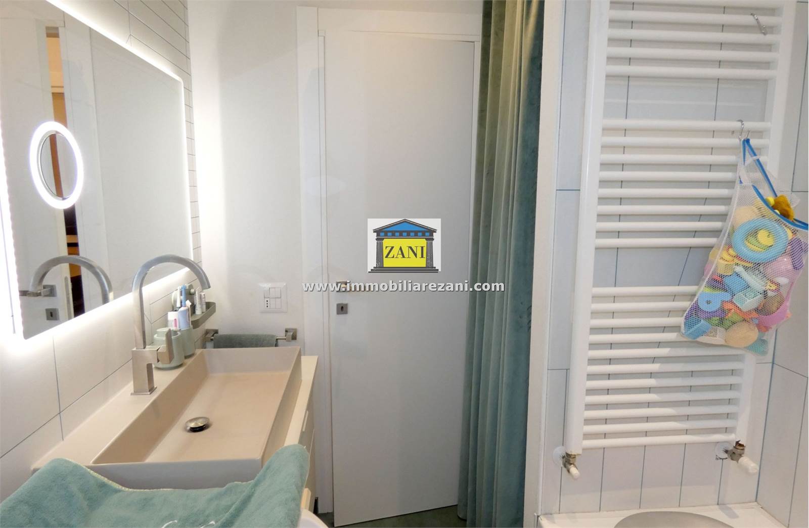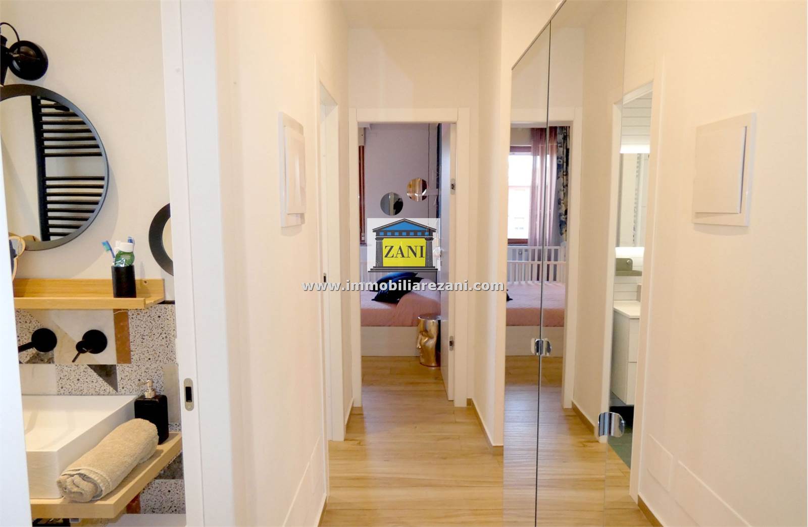 Le finiture sono di buon livello e uniformi in tutta la casa, con pavimentazione in gres porcellanato, infissi con doppi vetri e porta d’ingresso blindata. Il terrazzino è attrezzato con zanzariere elettriche e tenda da sole. L’impiantistica è completa di predisposizione per aria condizionata con due split, antifurto e tapparelle elettriche; nei bagni sono presenti scaldasalviette e le porte interne includono soluzioni scorrevoli in vetro tra cucina e disimpegno notte.