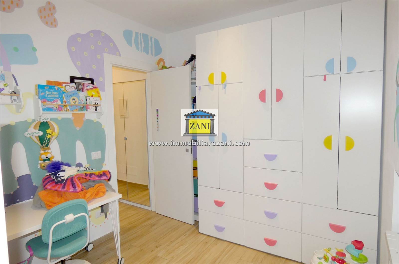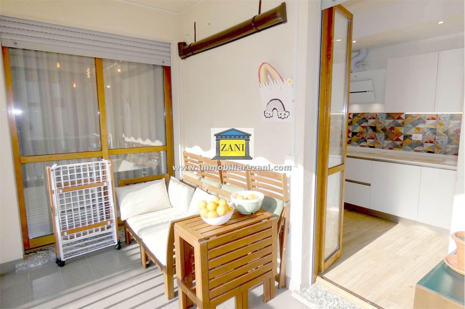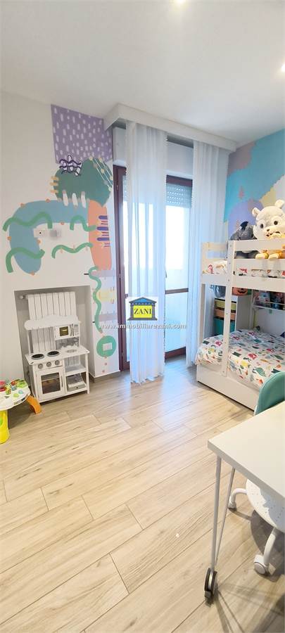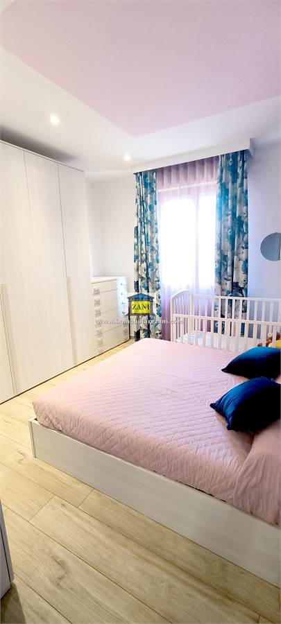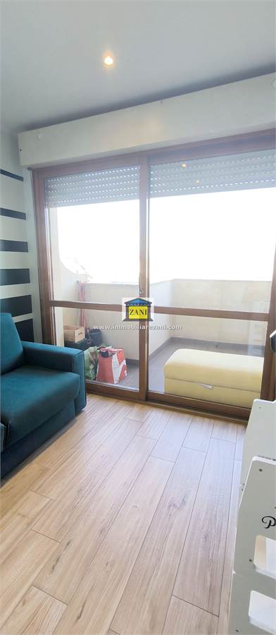 L’ingresso si apre su un salone di generose dimensioni, collegato direttamente alla cucina abitabile; entrambi gli ambienti hanno accesso a un terrazzino coperto, protetto e fruibile durante tutto l’anno. La zona notte è composta da tre camere da letto, due delle quali affacciano su un balcone panoramico. L’appartamento dispone di due bagni finestrati: uno dotato di vasca idromassaggio e uno con doccia, entrambi con spazi dedicati per lavatrice e asciugatrice. È presente anche un comodo ripostiglio interno.