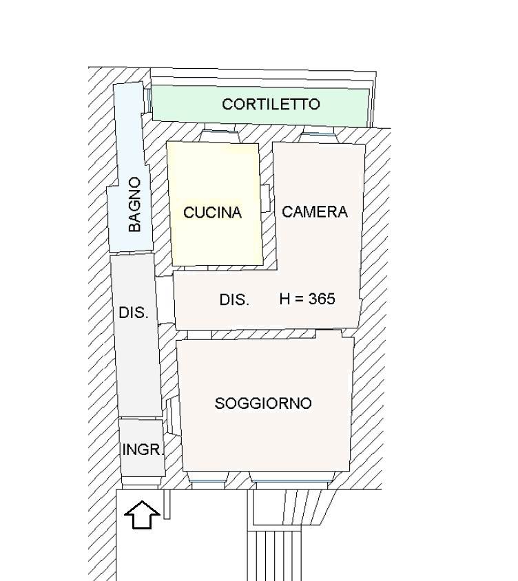 L'appartamento si sviluppa con una distribuzione razionale: ampio ingresso, SALONE con grandi finestre, disimpegno, cucina abitabile spaziosa, camera matrimoniale e bagno di generose dimensioni con zona lavanderia integrata. Dal bagno si accede a un cortiletto privato di circa 10 mq.