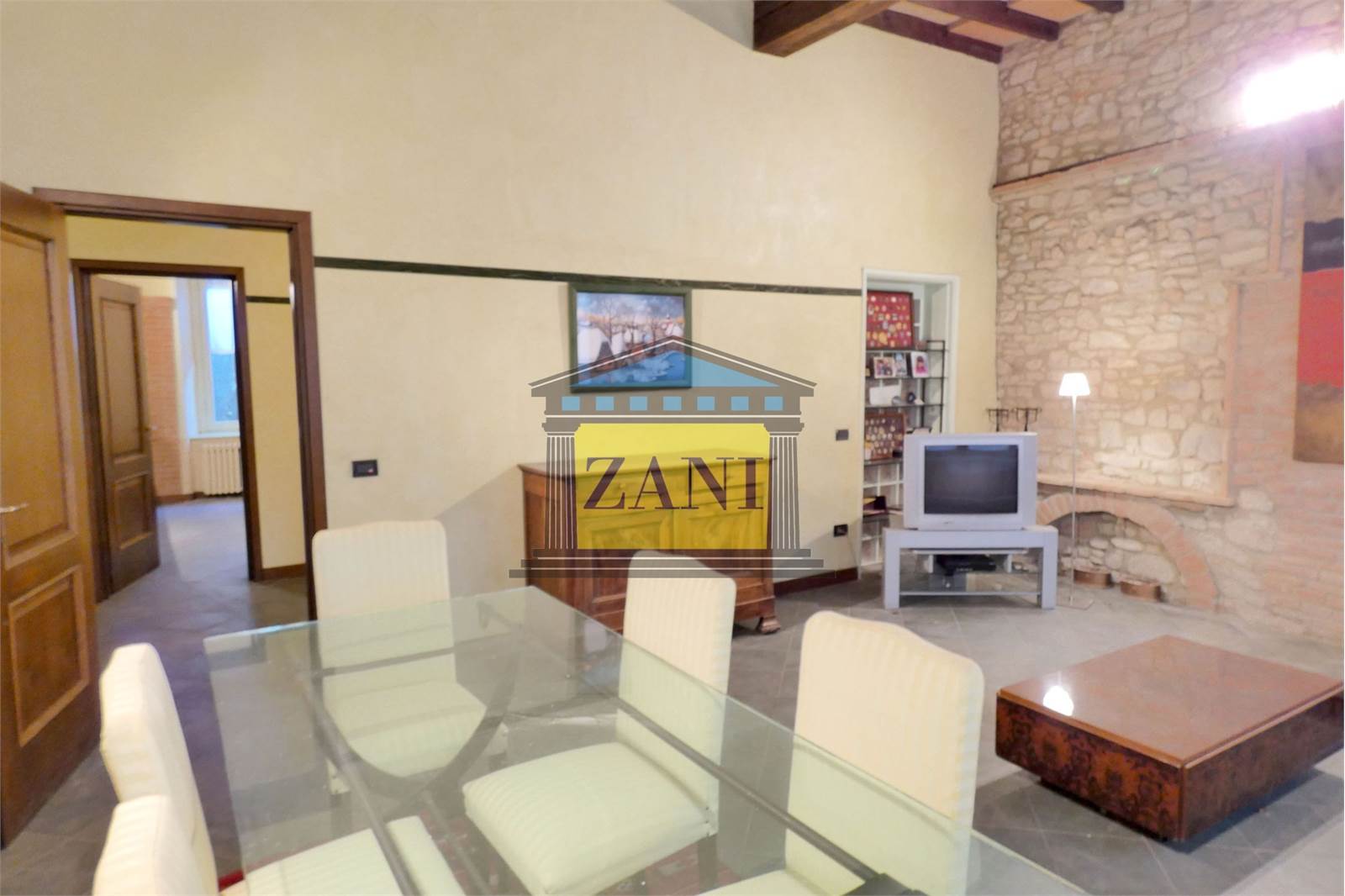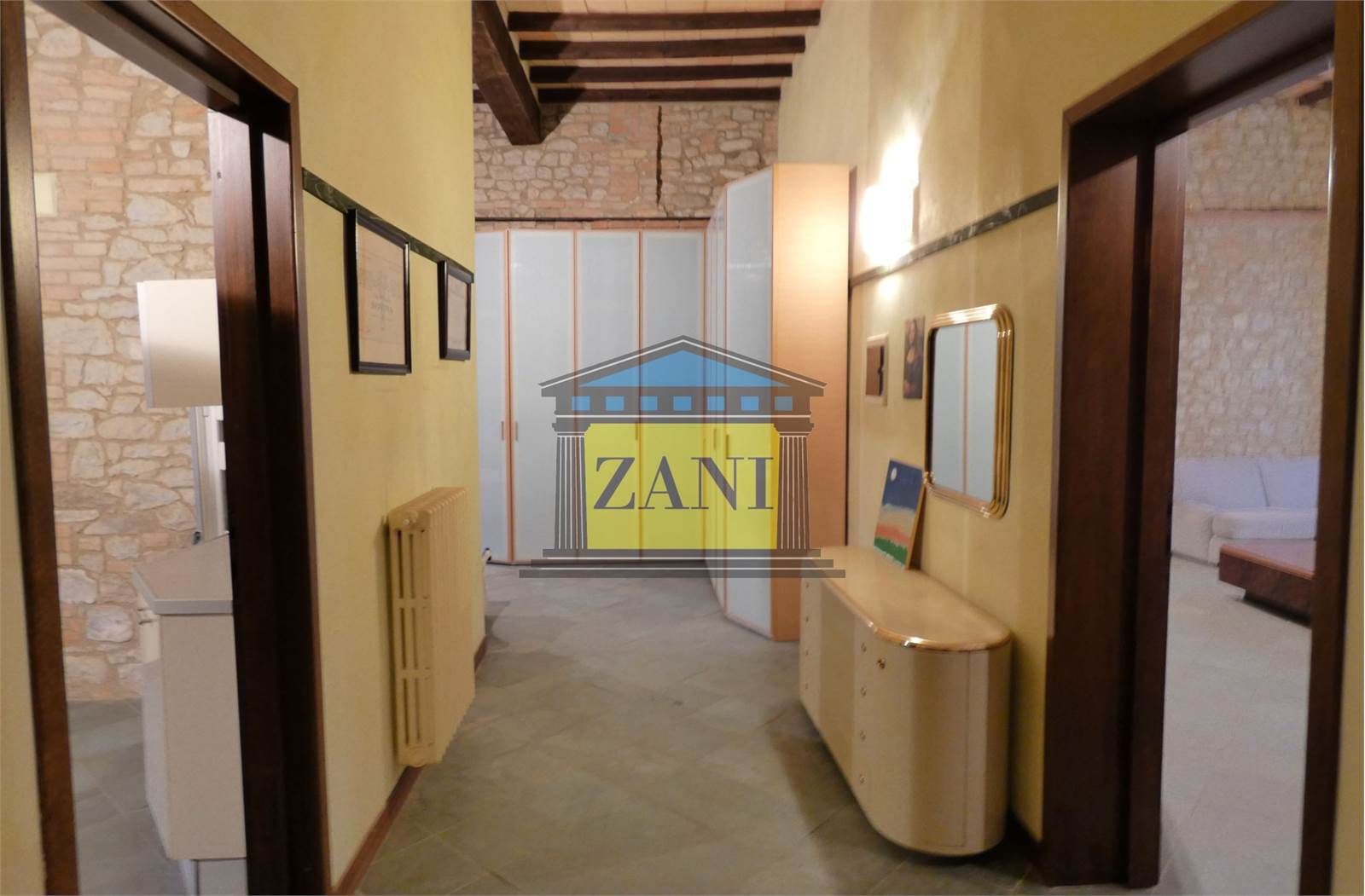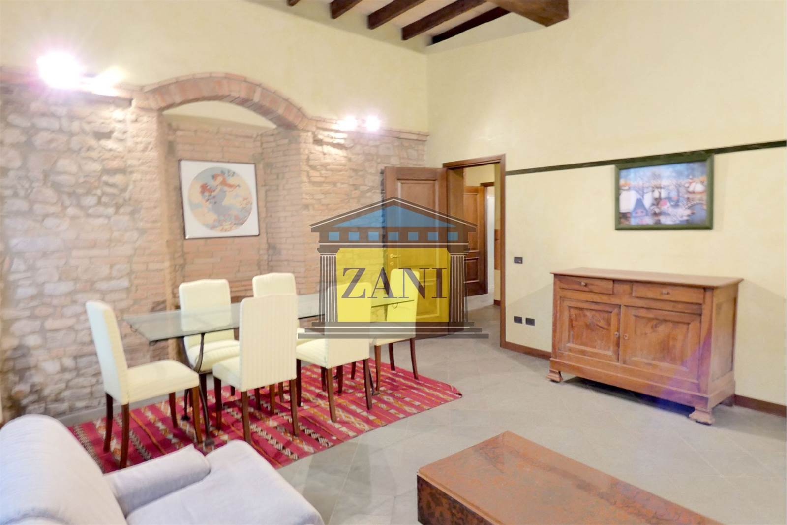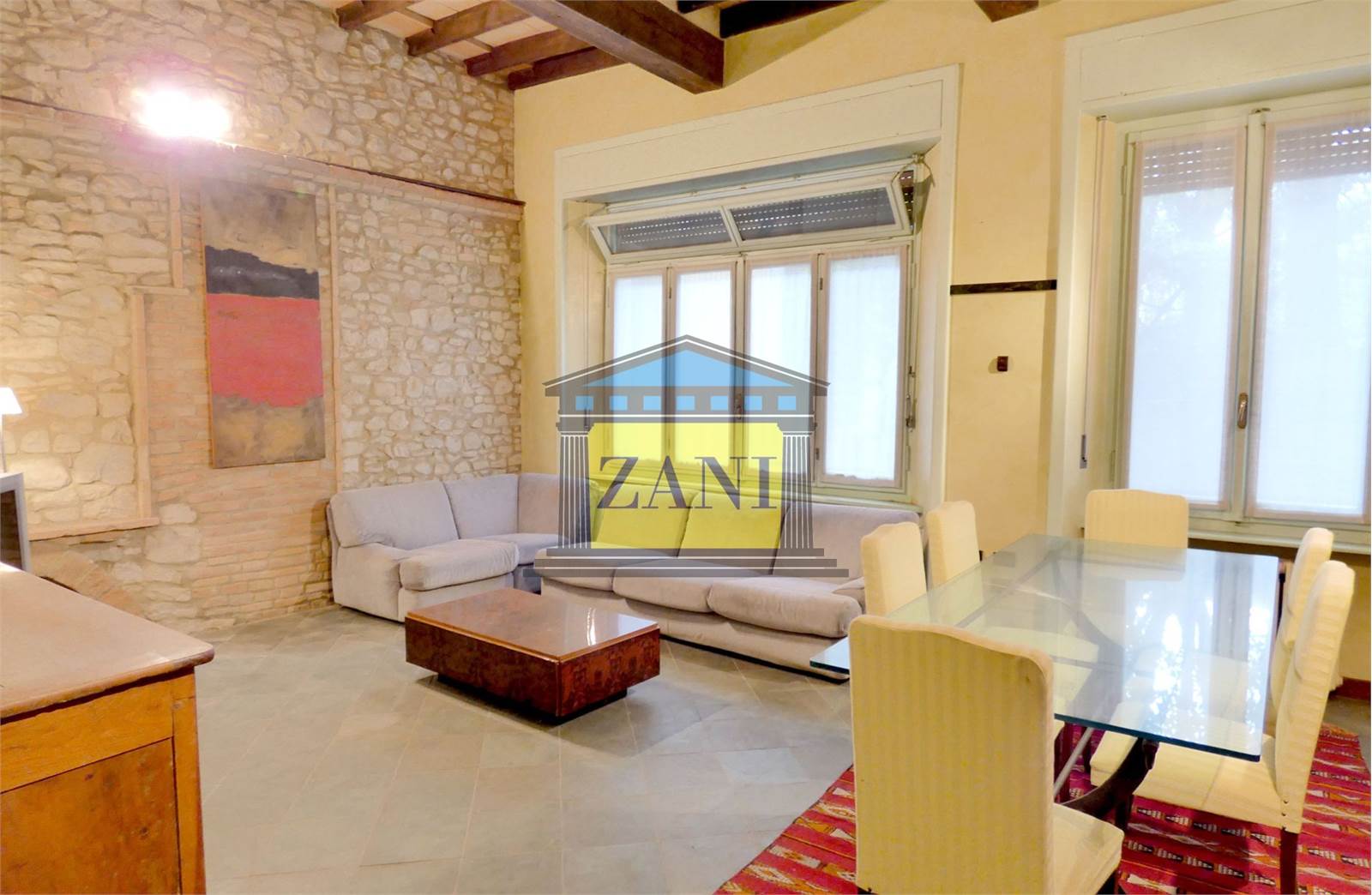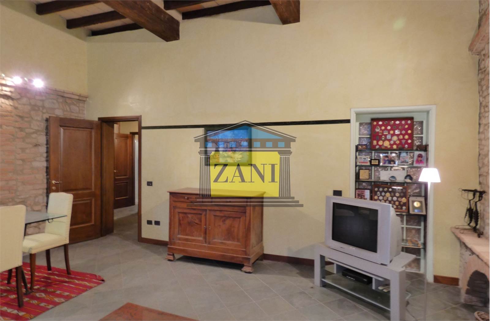 - Soffitti a 3,60 m con travi in legno a vista